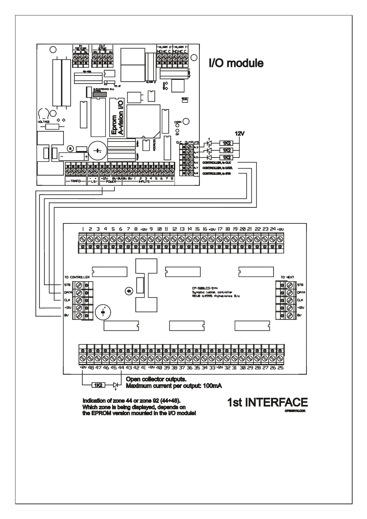 Figure 13. Wiring diagram synoptic interface (004444) and an I/O module