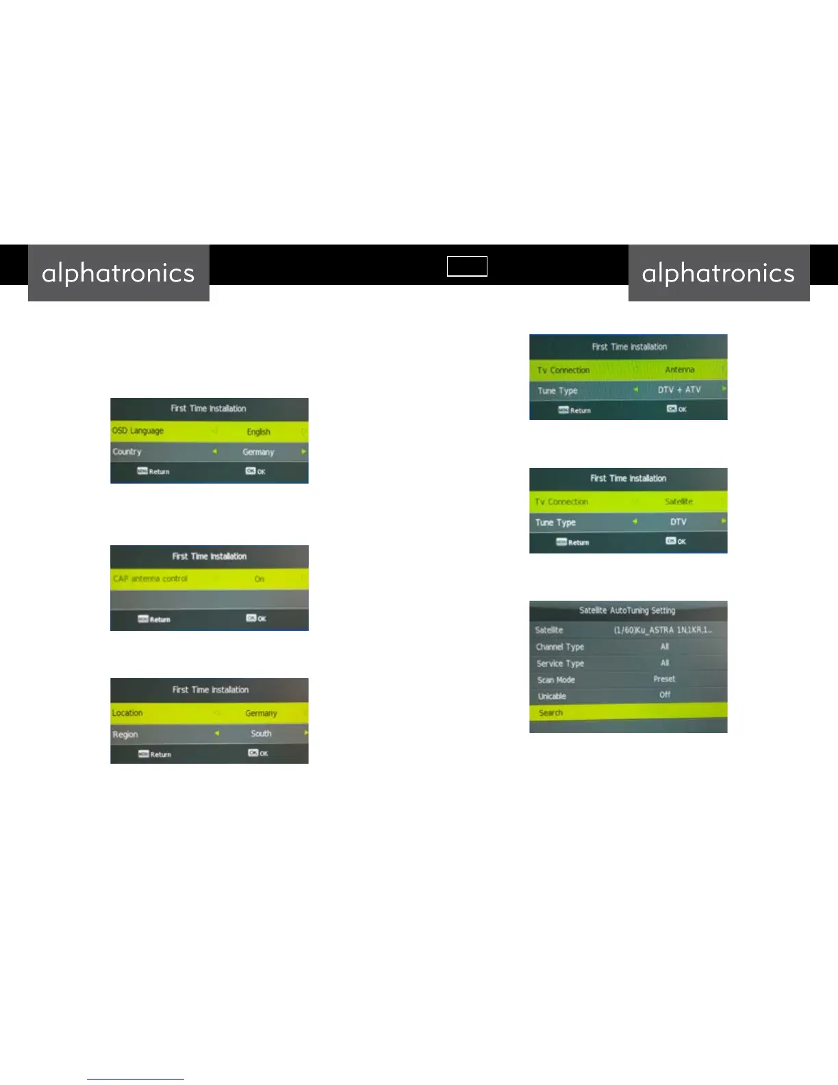 Using the arrow keys, please navigate on the top row to Satellite and confirm with ENTER.