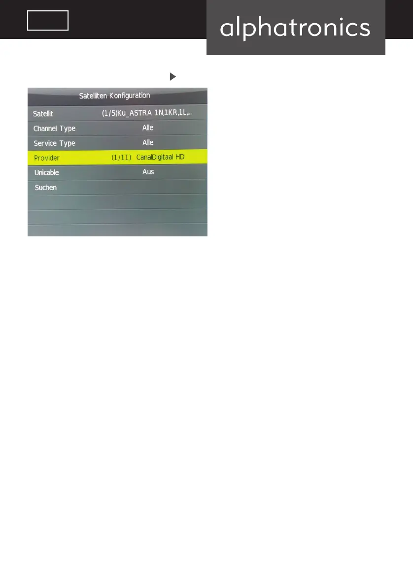 5. Auf Auswahl Provider mit der Pfeil Taste kann man die Länderlisten einstellen