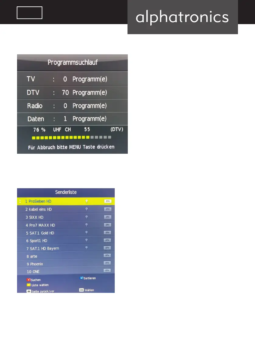 Der Programmsuchlauf ergibt je nach Region über 60 Programme.