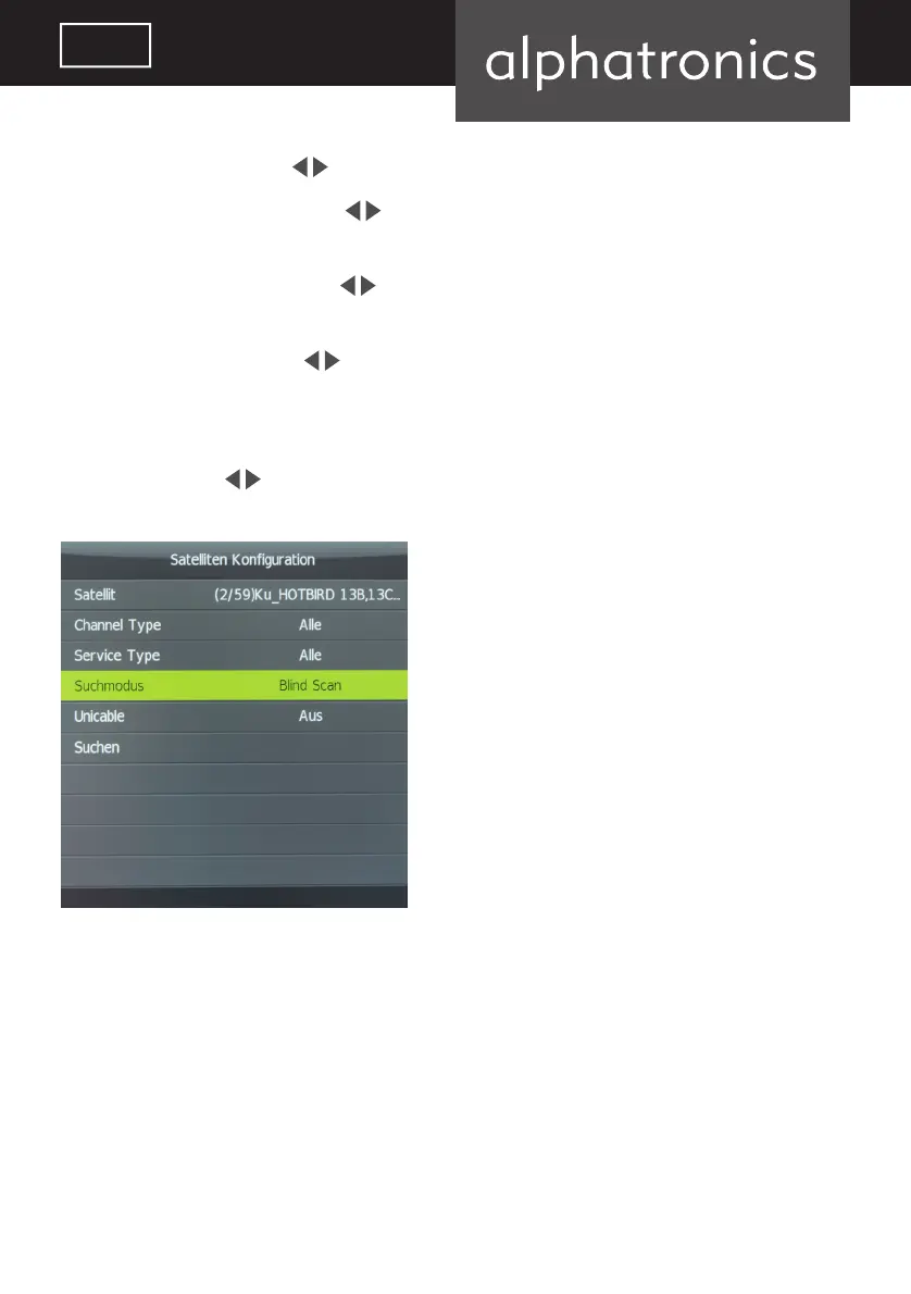 Satellit: Wählen Sie mit den Tasten den gewünschten Satelliten aus.