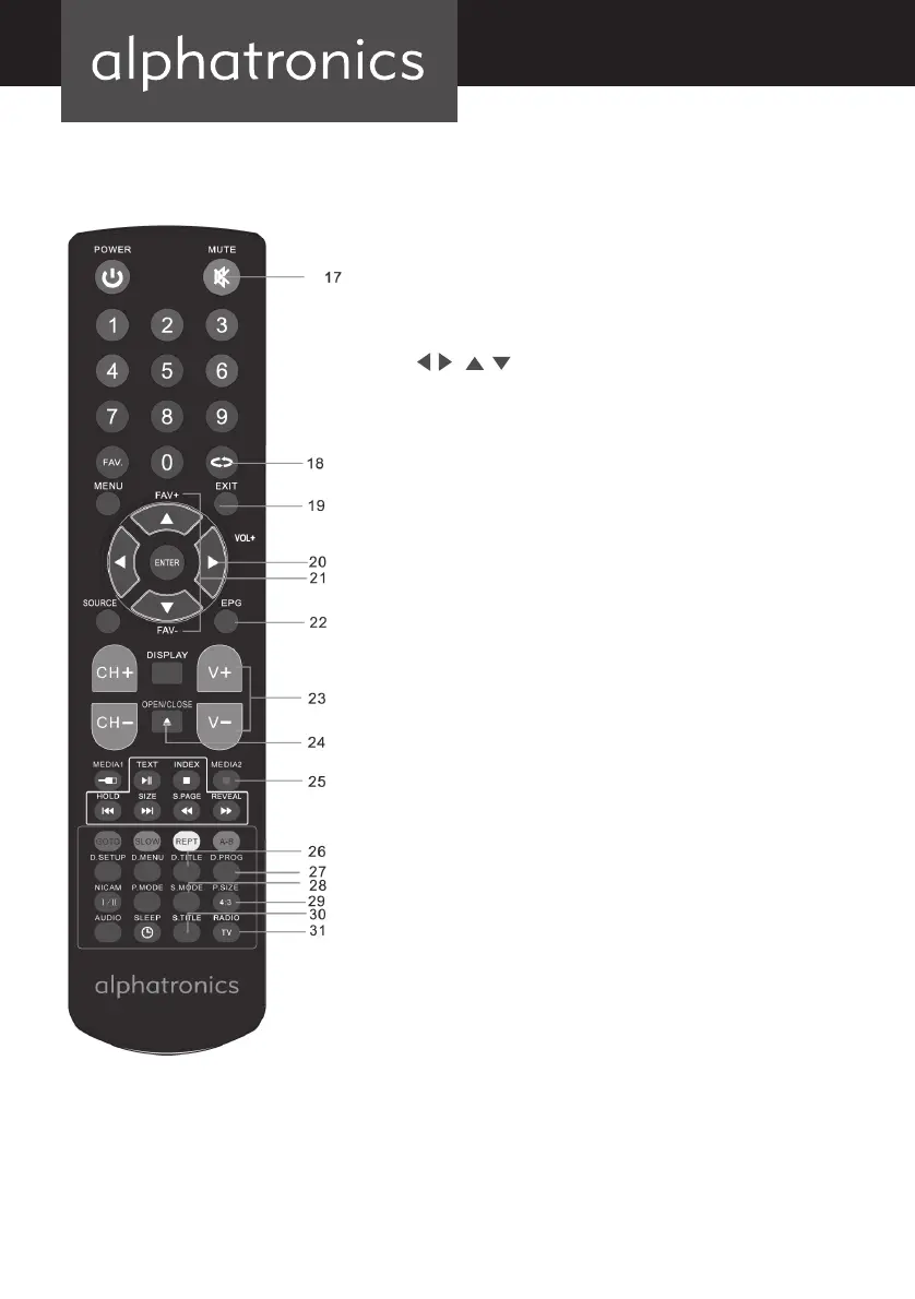 31. TV/Radio (To select TV and Radio in DTV mode.)