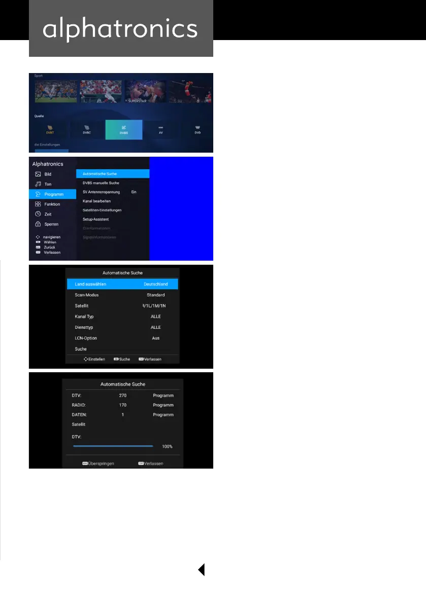 Wählen Sie mit den Pfeiltasten „DVB-S“ aus und