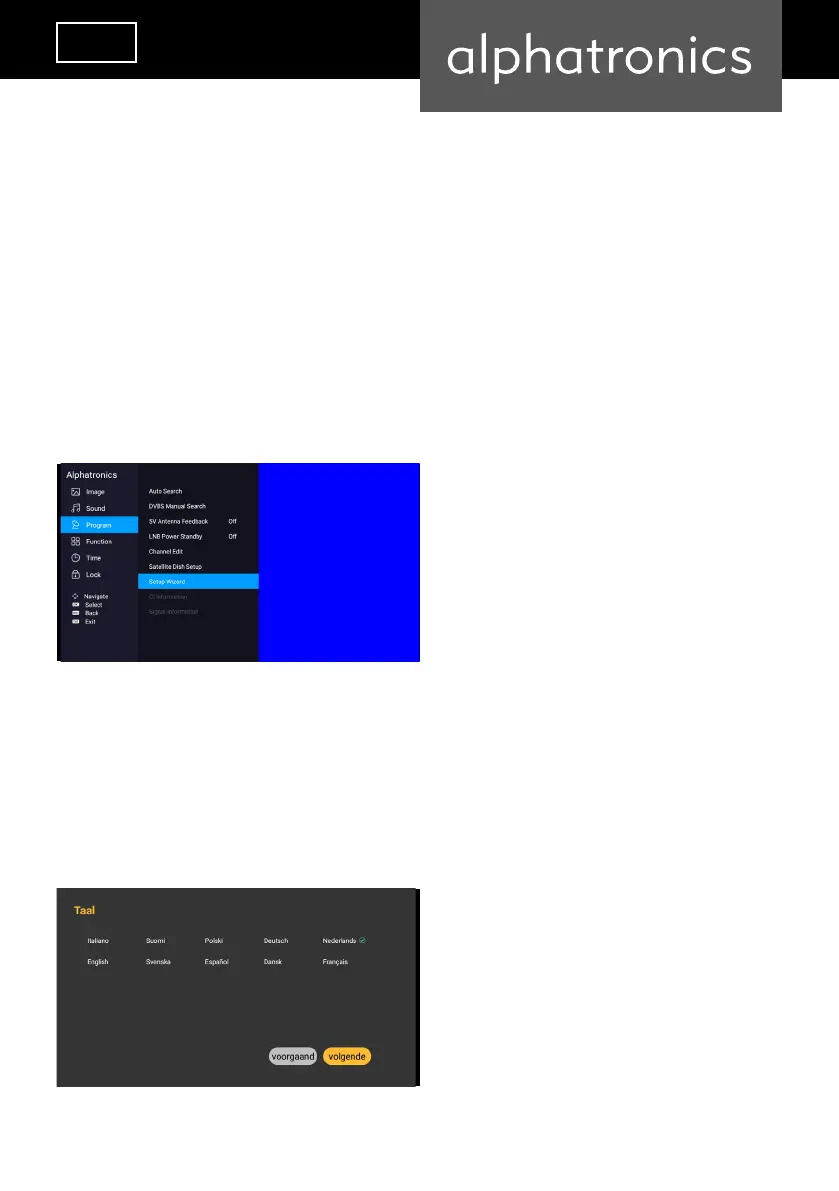 Button menu, then click on the icon „Channels“, select your language, eg. Dutch, then press