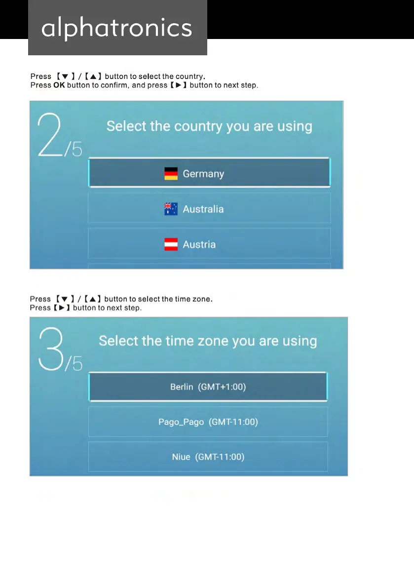 alphatronics SLA DSBAI+ Series - Country and Time Zone Configuration; Country Selection; Time Zone Configuration