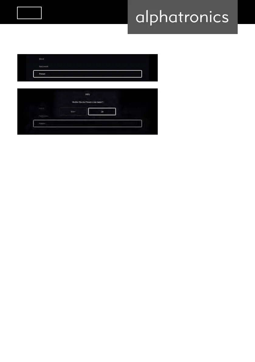 Confirm the search and choose “Preset”. Then the preset german channels will be loaded.