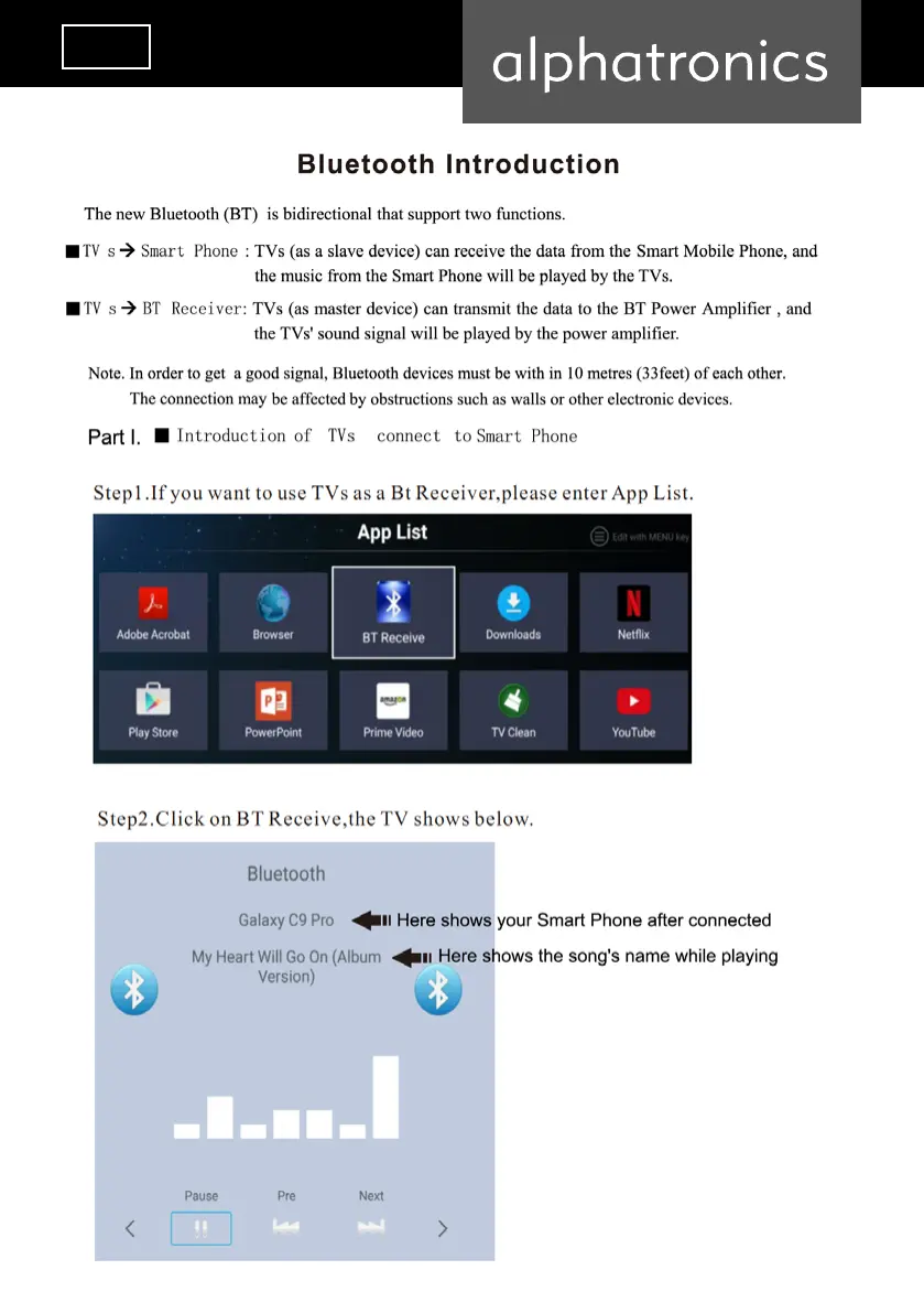 alphatronics SLA DSBAI+ Series - Bluetooth Functionality; Bluetooth Capabilities Overview; Connecting TV as Bluetooth Receiver