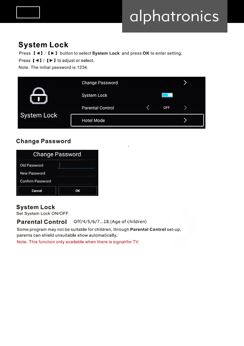 alphatronics SLA DSBAI+ Series - System Lock and Parental Control; Password Management; System Lock and Parental Control Setup