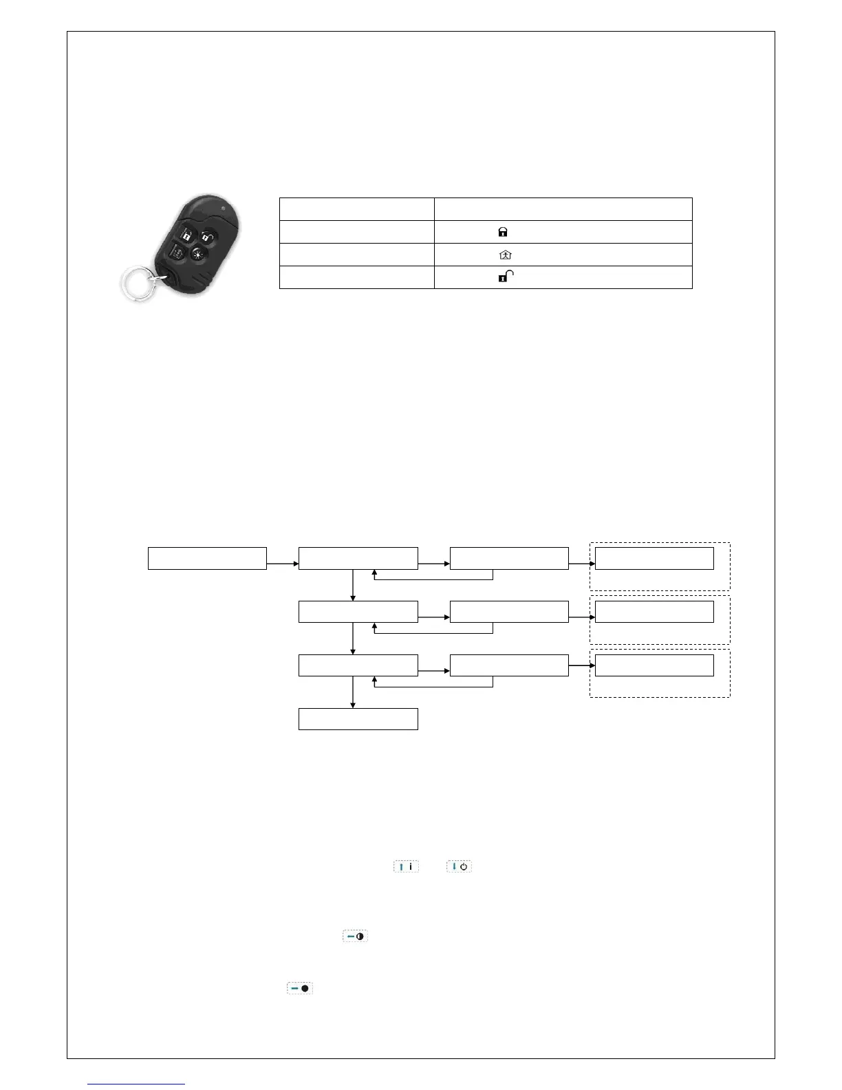 and disarming. The transmitter has 4 buttons each with the following function: