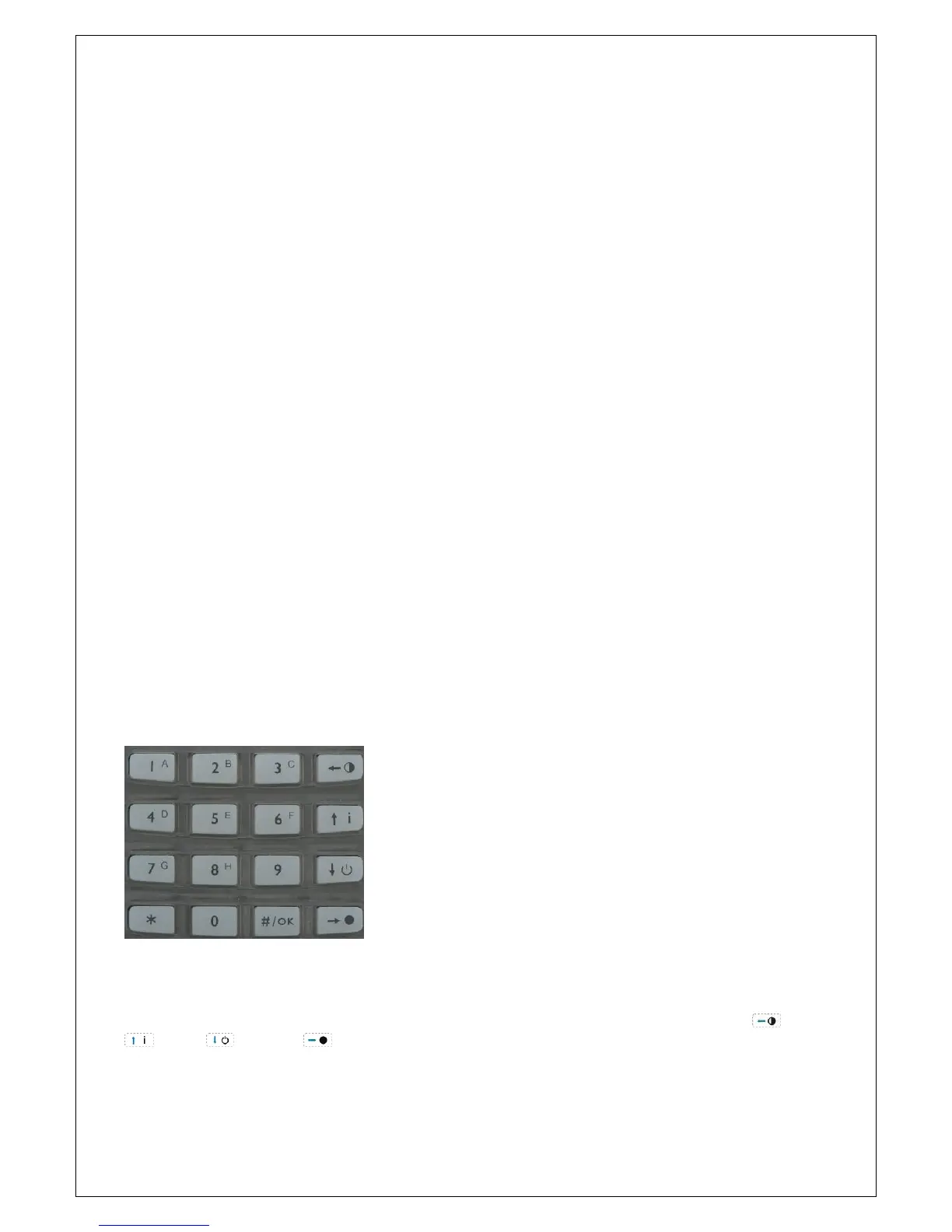 navigator keys (the 4 right most keys). The numerical keys are mainly used for arming/disarming with a PIN-