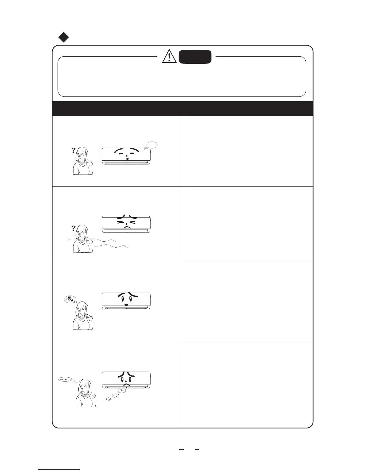 Do not repair the air conditioner at your discretion. Incorrect repair may cause electric