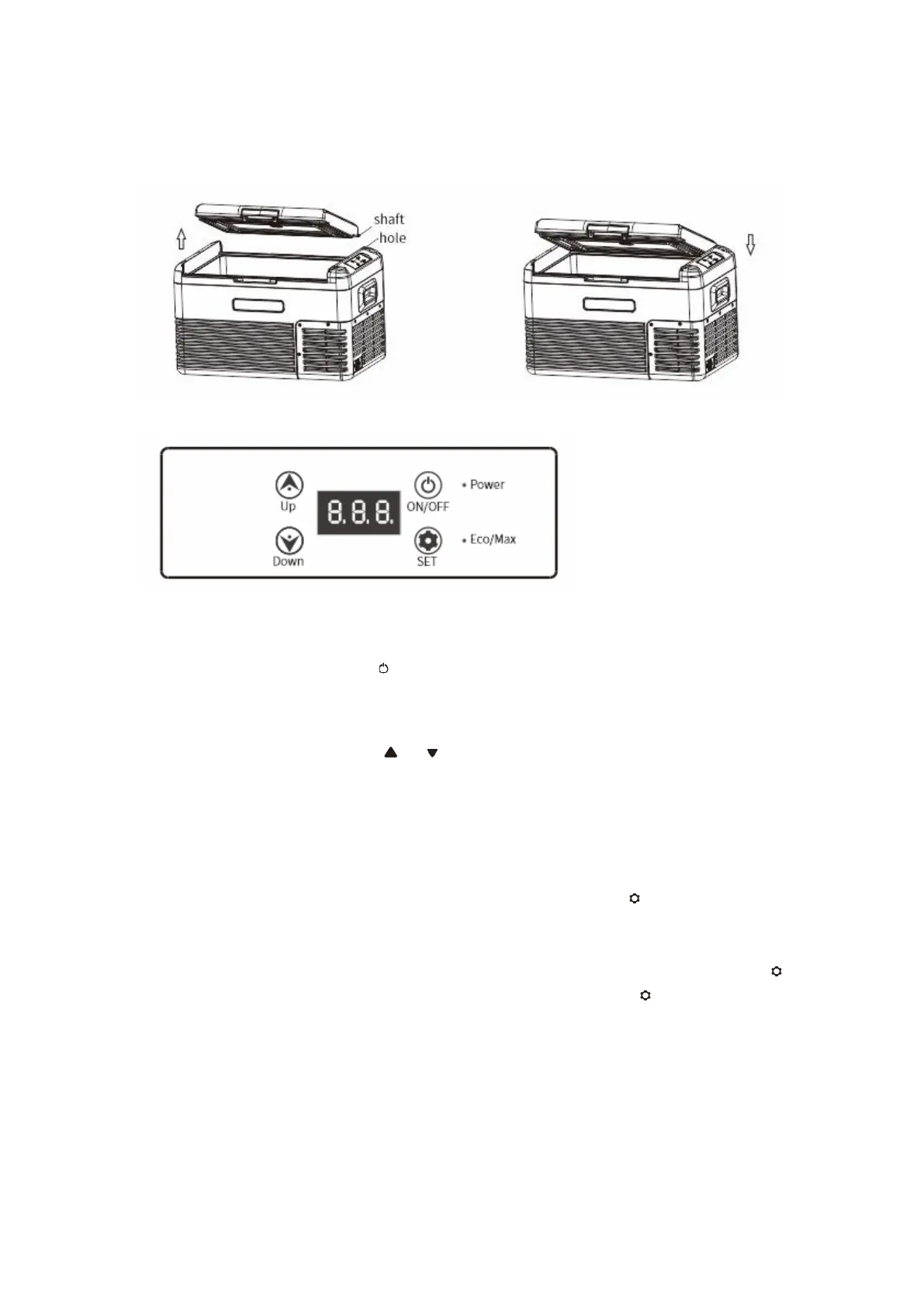 (modo de refrigeración rápida, luz Eco/Max en rojo) y ECO (modo de ahorro de energía, luz