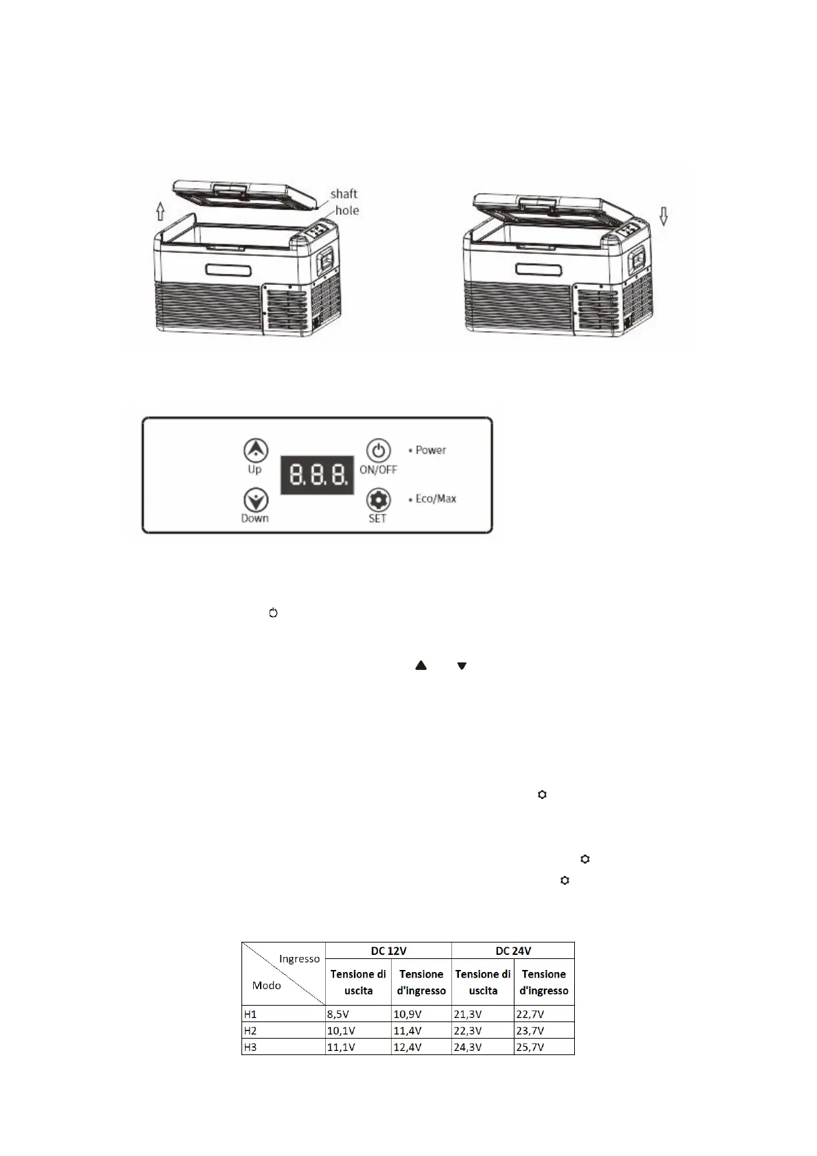 (modalità di raffreddamento rapido, spia Eco/Max rossa) ed ECO (modalità a risparmio