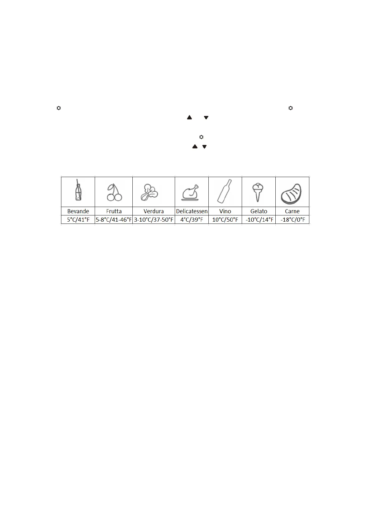 • Temperatura consigliata per gli alimenti comuni: