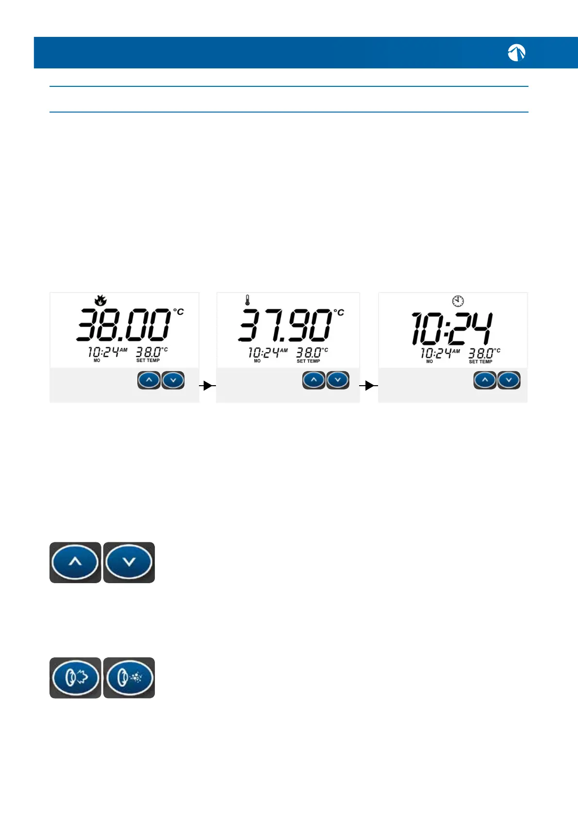 Pressingorholdingthe‘UP’or‘DOWN’buttonswilladjustthesettemperaturein