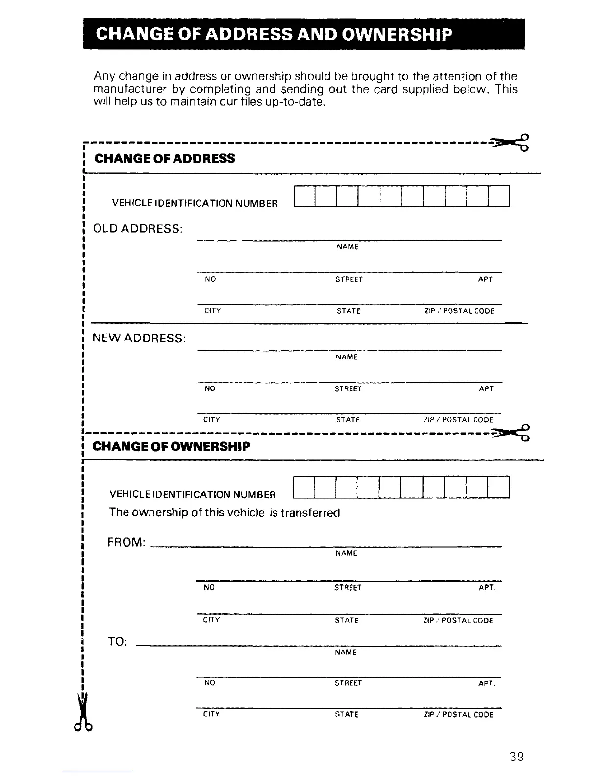Any change in address or ownership should be brought to the attention of the