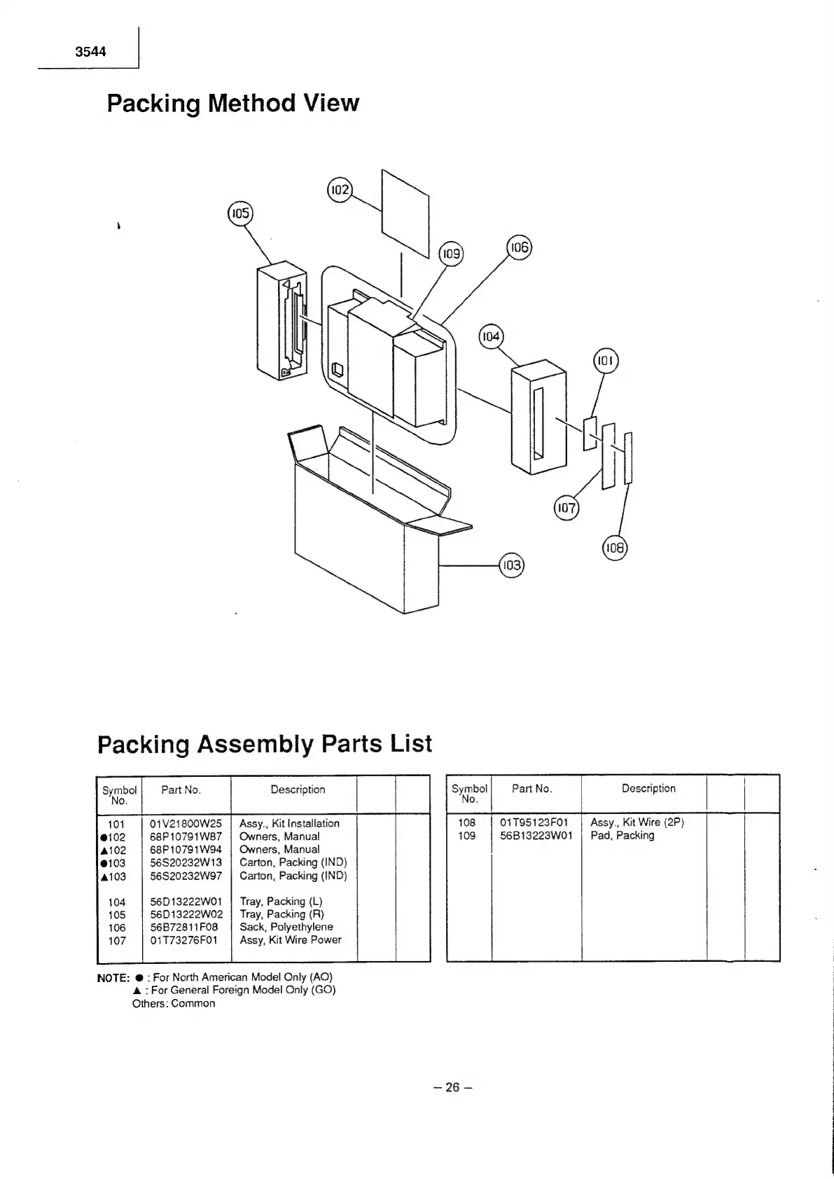 Alpine 3544 - Packing Information; Packing Method View; Packing Assembly Parts List