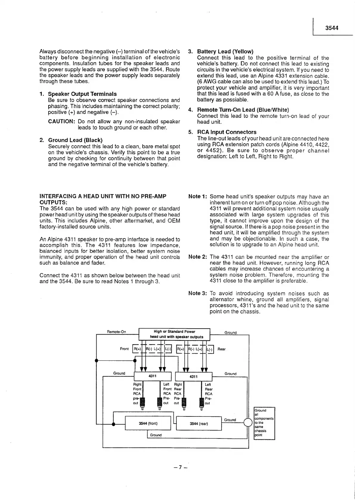 Alpine 3544 - Head Unit Interfacing; No Pre-Amp Output Installation