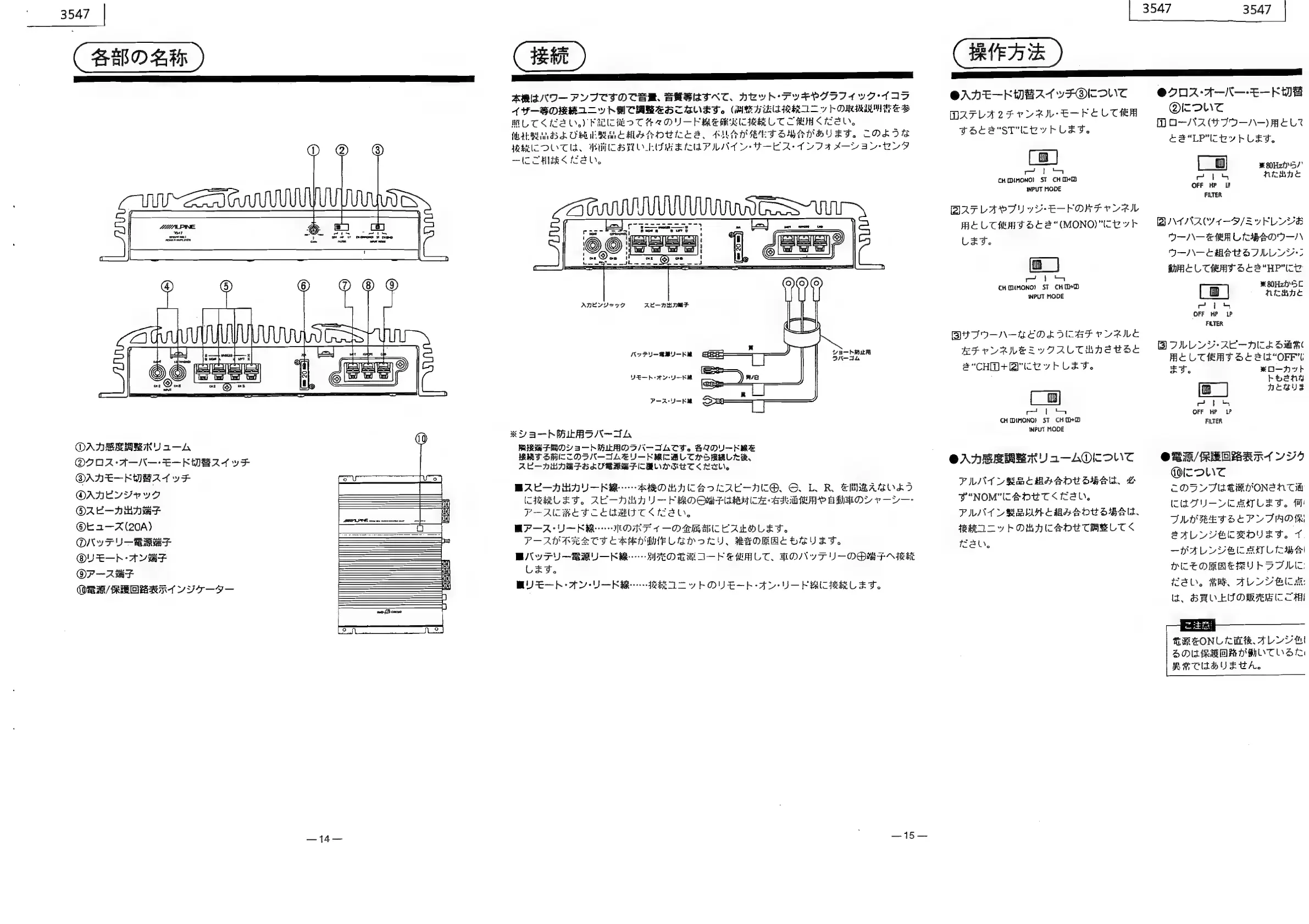 Alpine 3547 - Part Identification; Control and Indicator Identification; Terminal Identification; Connections and Operation
