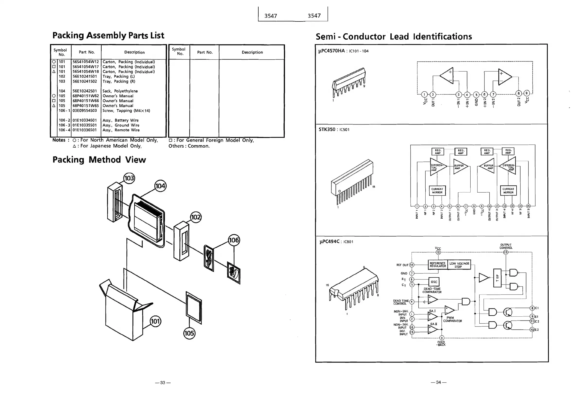 Alpine 3547 - Packing Assembly Parts List; Semi-Conductor Lead Identifications