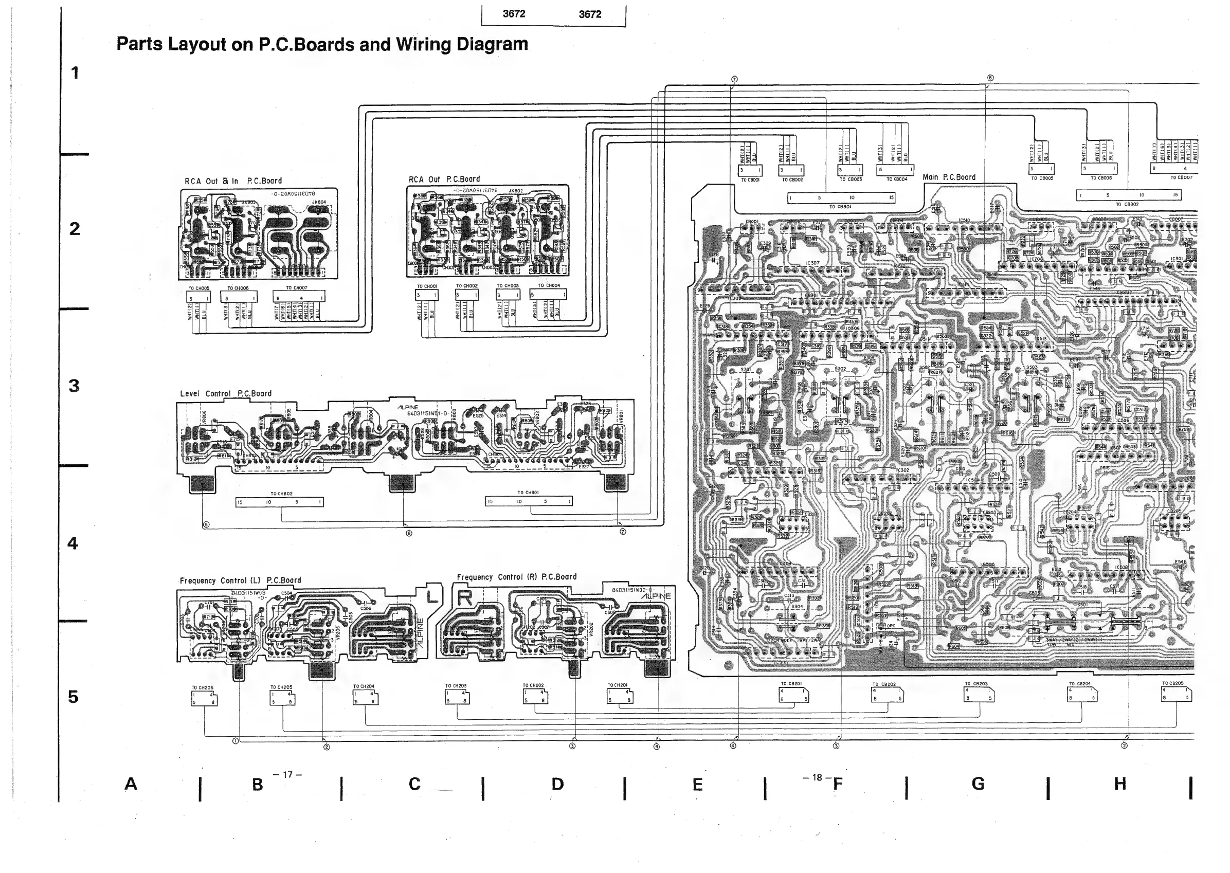Alpine 3672 - PC Board Layout and Wiring Diagram; PC Board Component Layouts