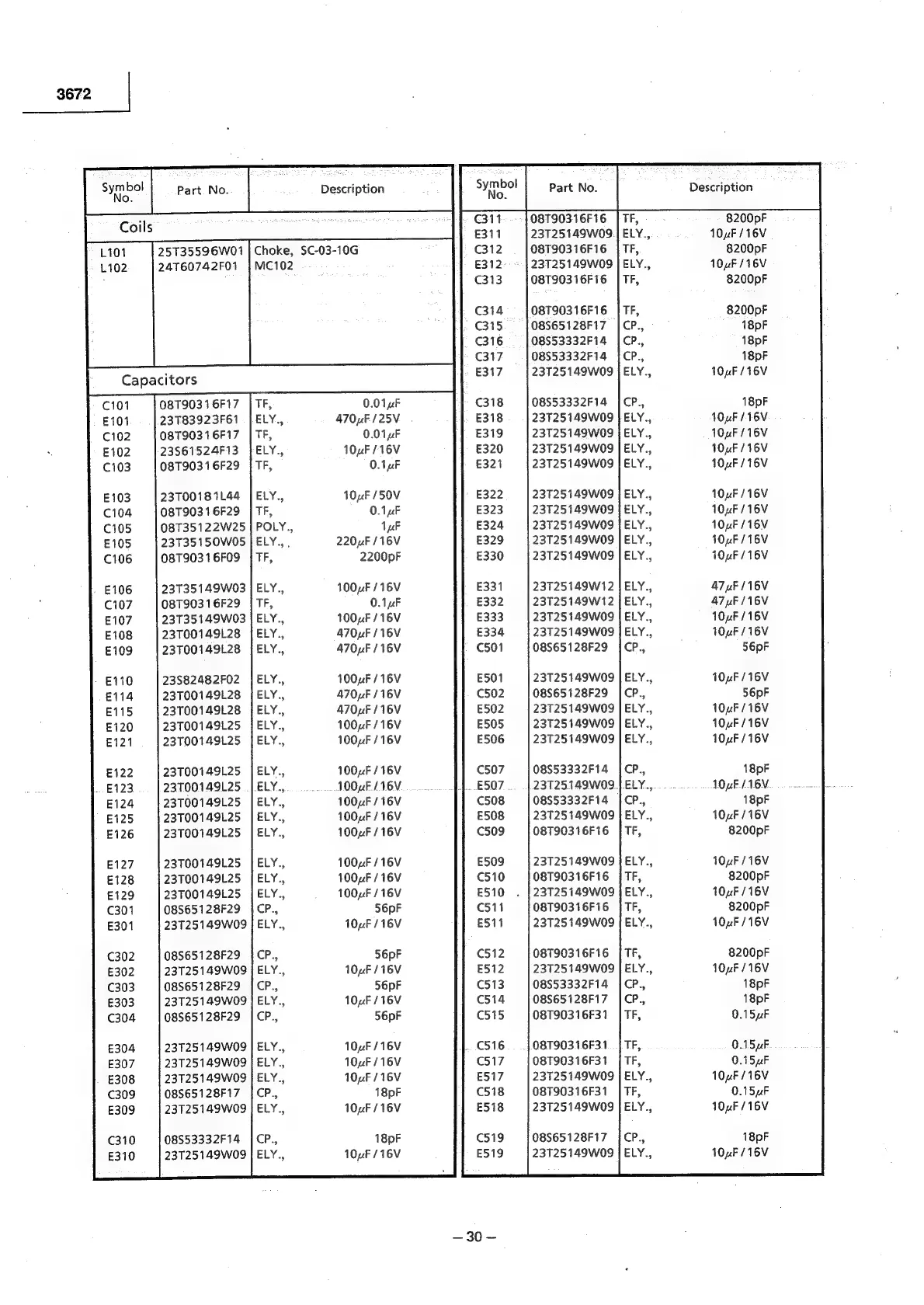 Alpine 3672 - Capacitor Part Numbers