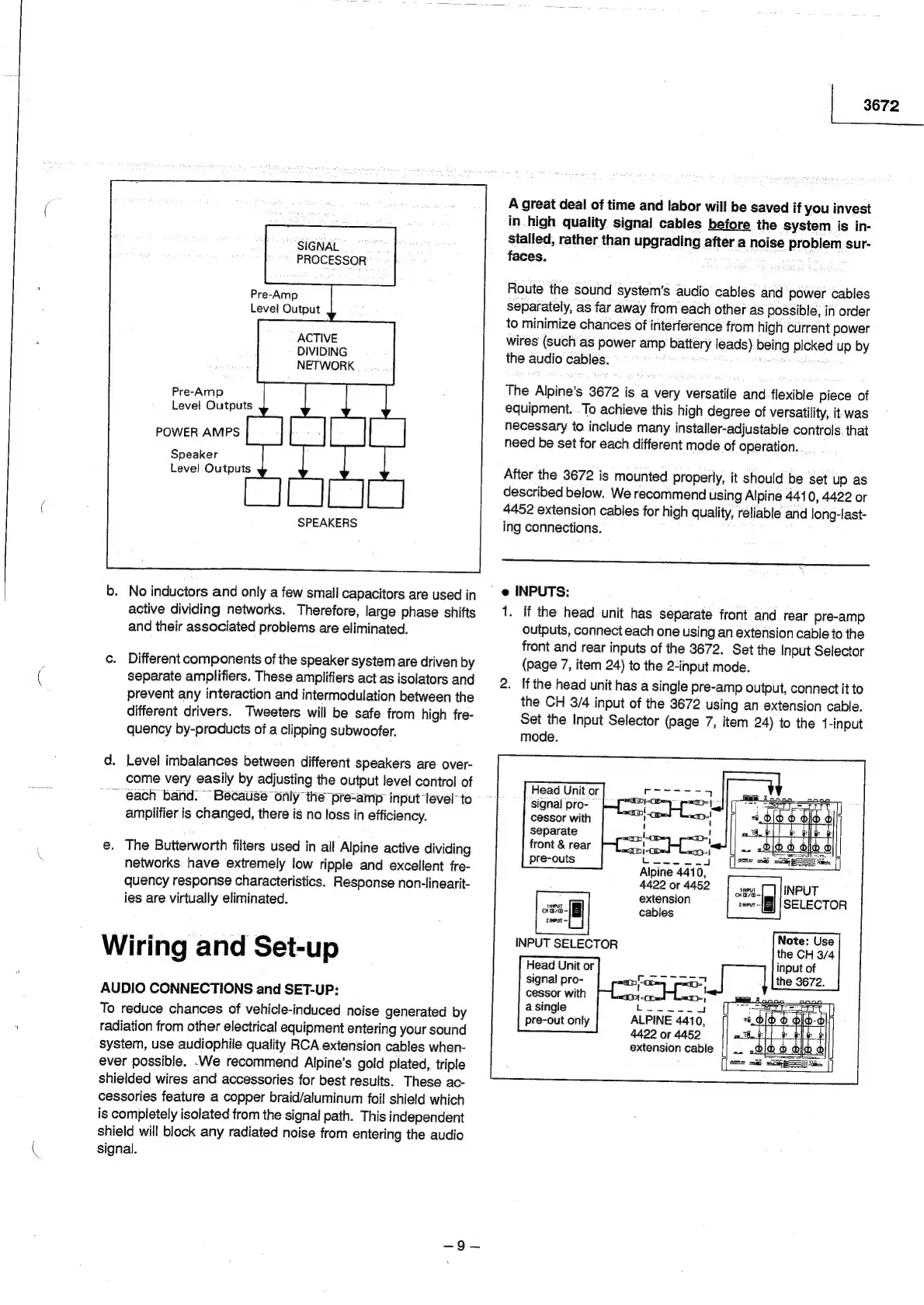 Alpine 3672 - Wiring and Setup Guide; Audio Cable Routing and Connections