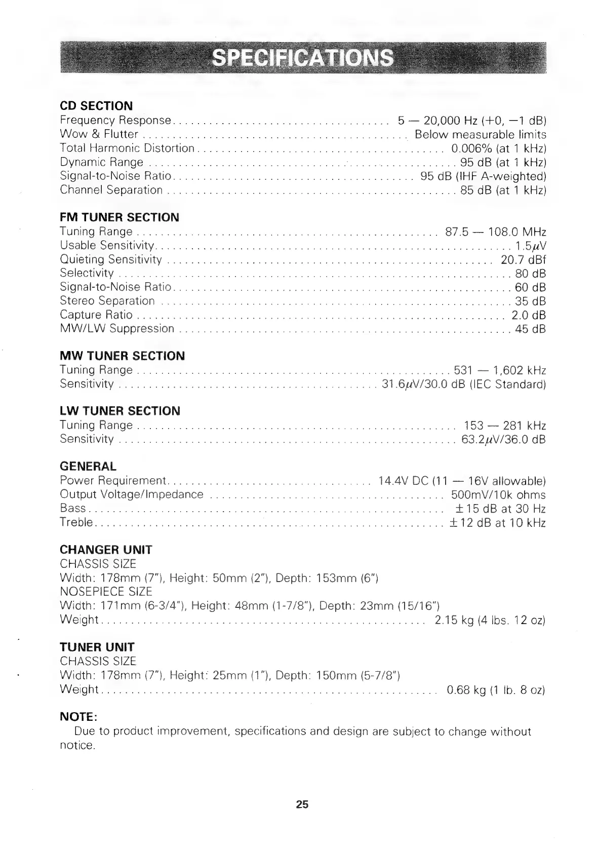 specifications