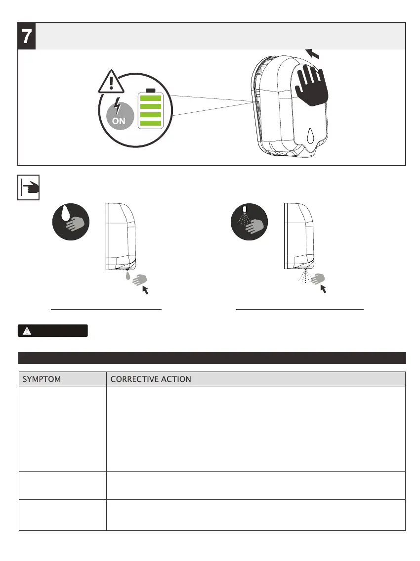 Activate the dispenser sensor several times for first time use or after long time