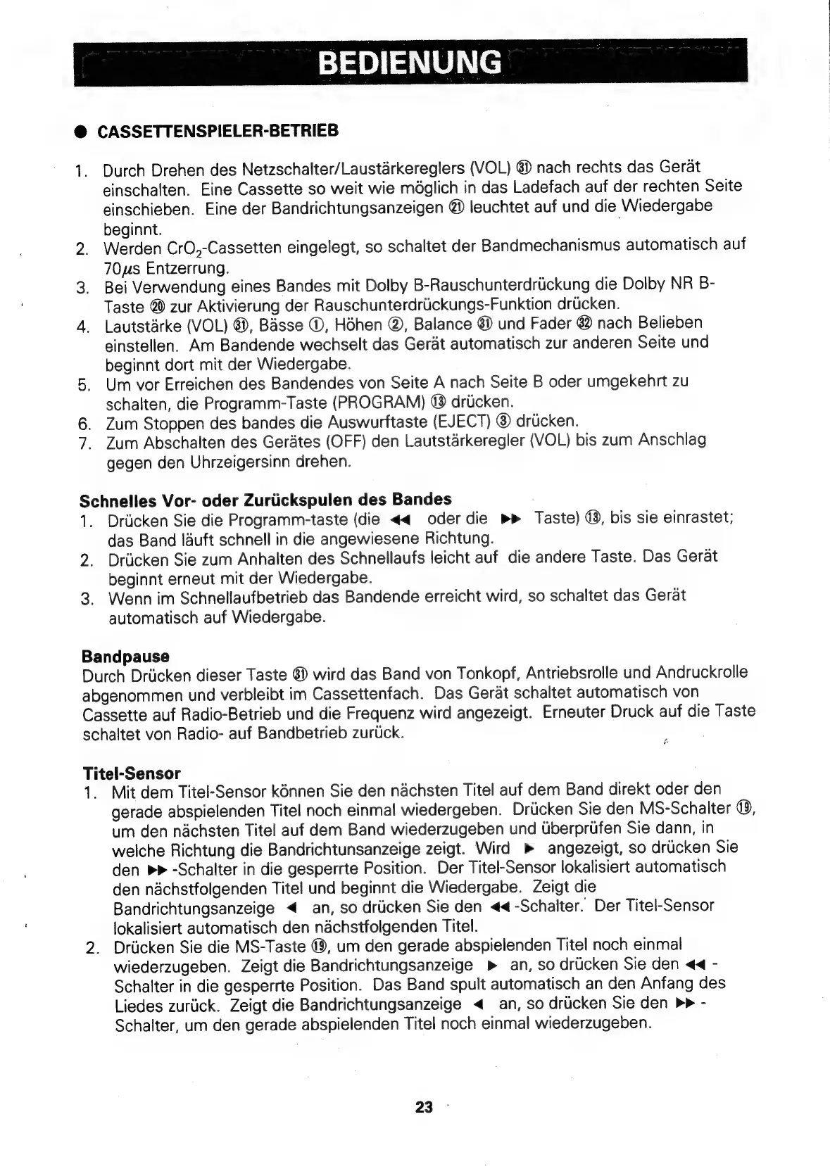 CASSETTENSPIELER-BETRIEB
