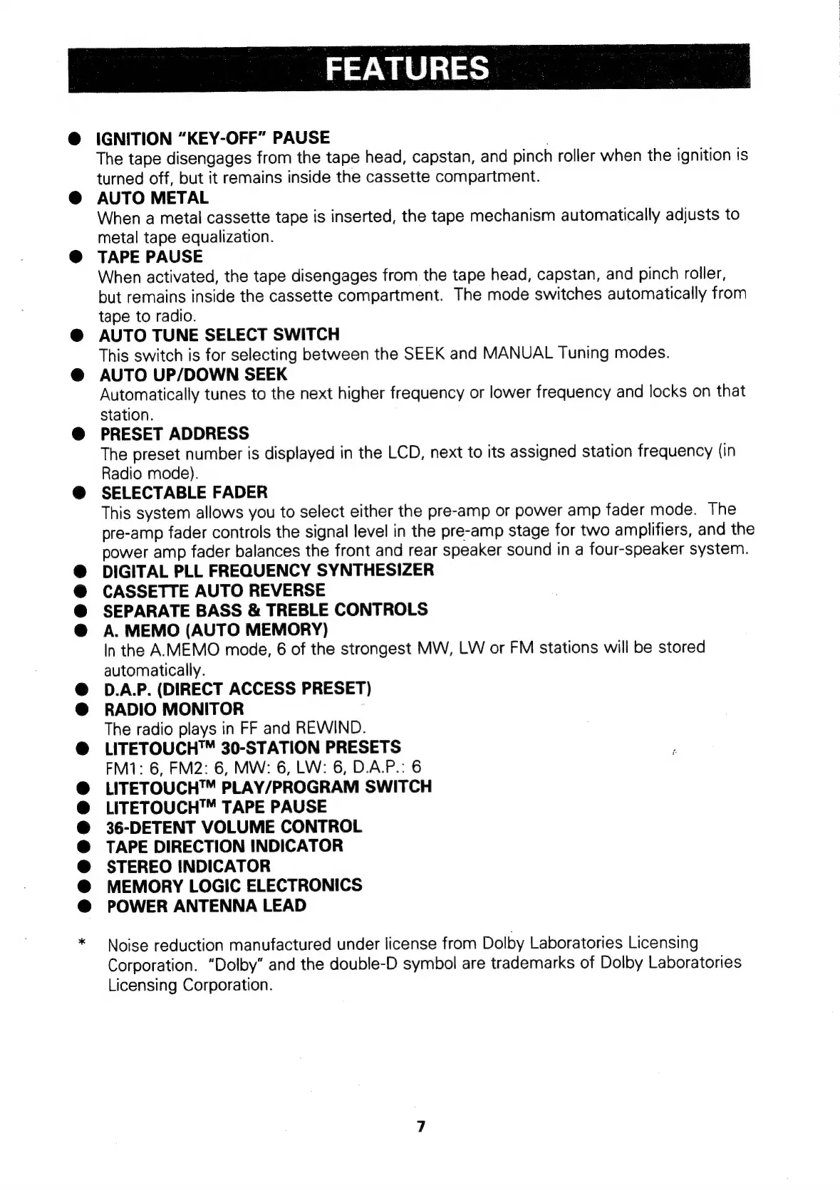 FEATURES