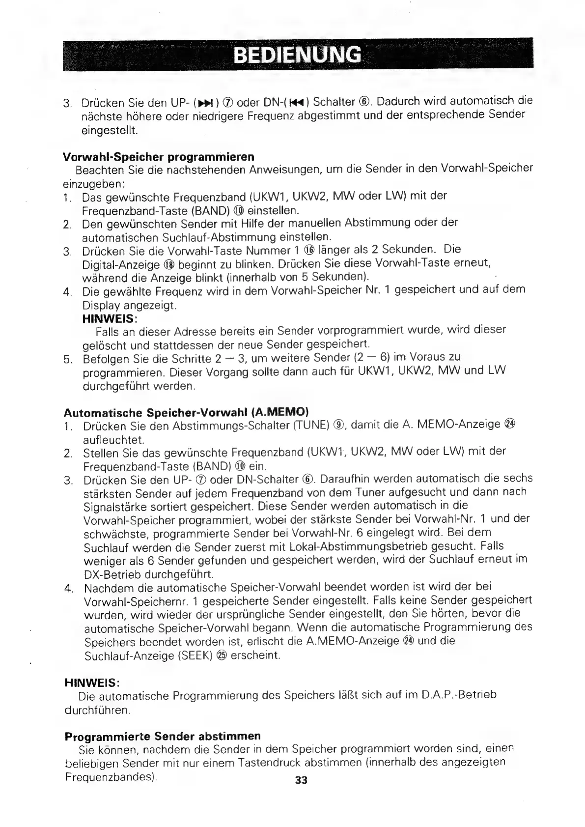 BEDIENUNG