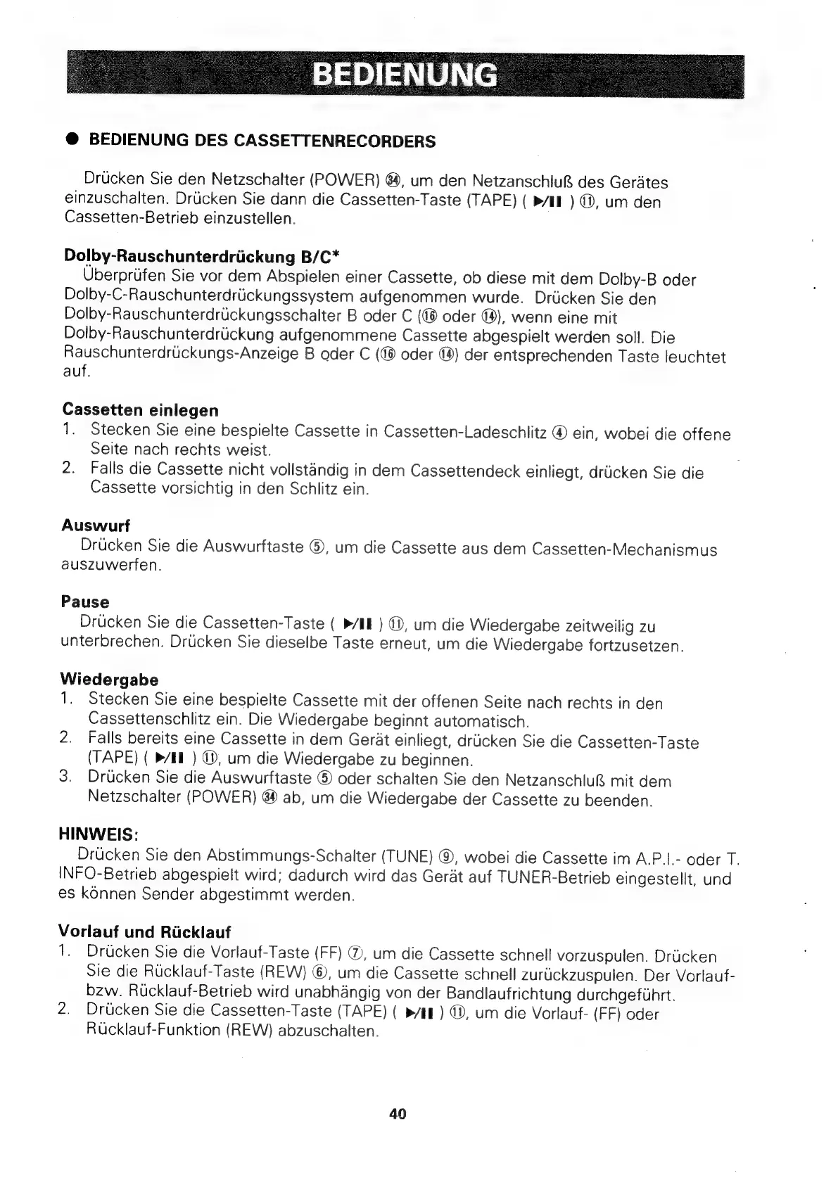BEDIENUNG