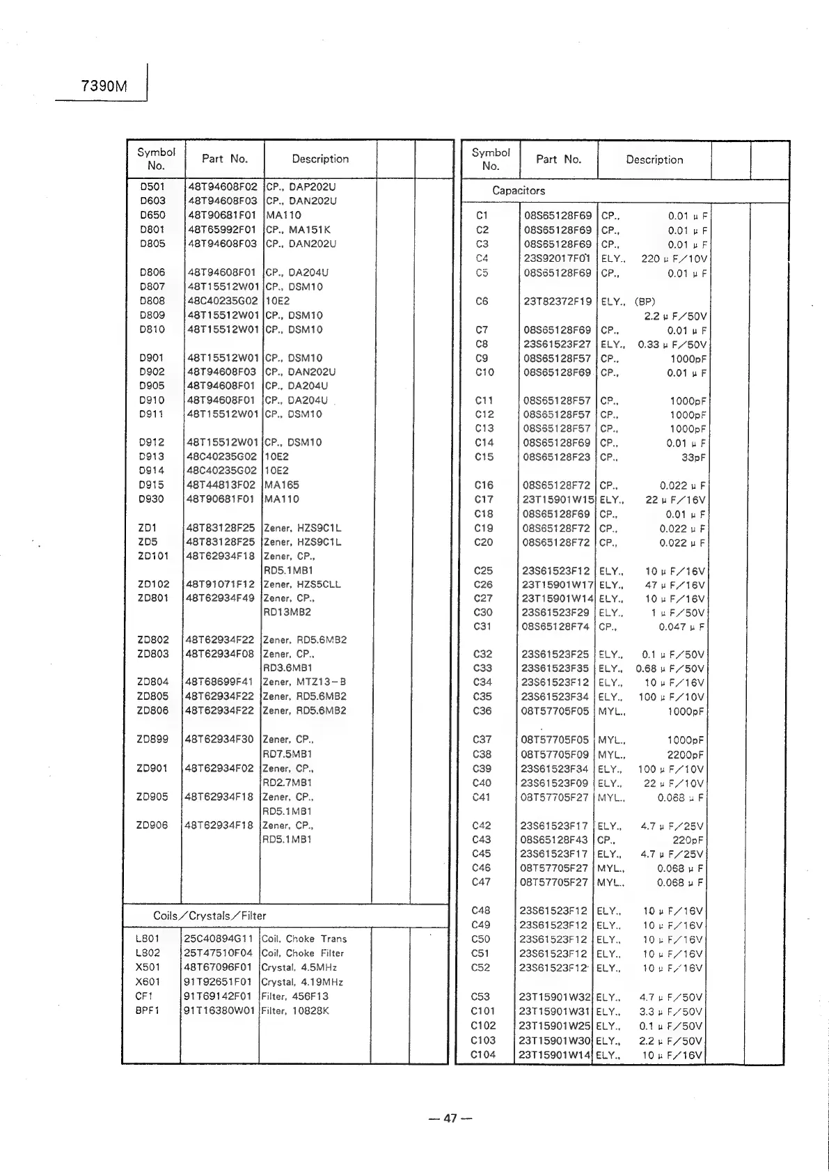 Alpine 7390M - Parts Lists (continued); Electrical Parts List - Diodes, Capacitors