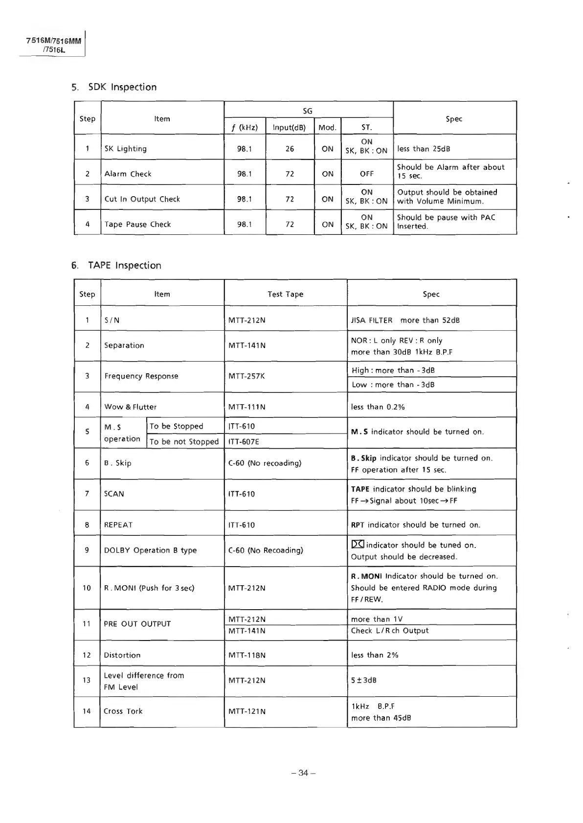 Alpine 7516MM - Tape and SDK Inspection; SDK and Tape Inspection Procedures