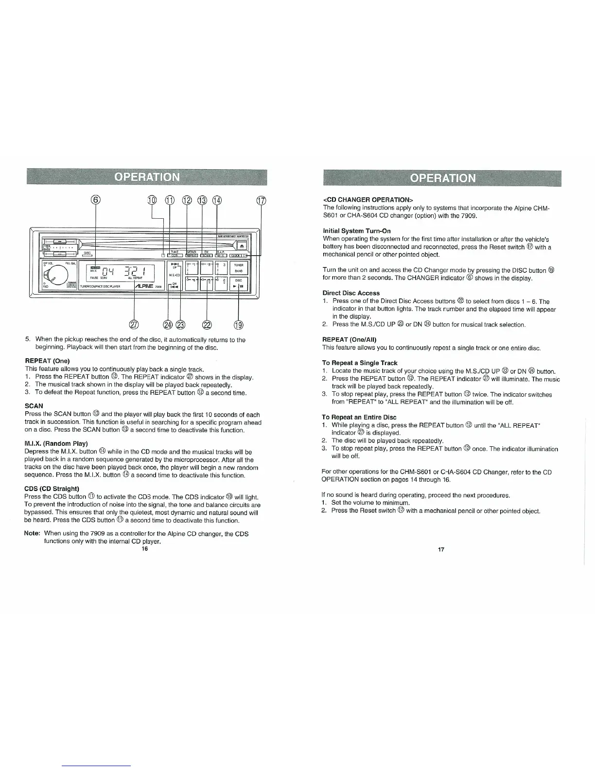 Alpine 7909 - OPERATION; CD Playback Modes; CD Changer Operations