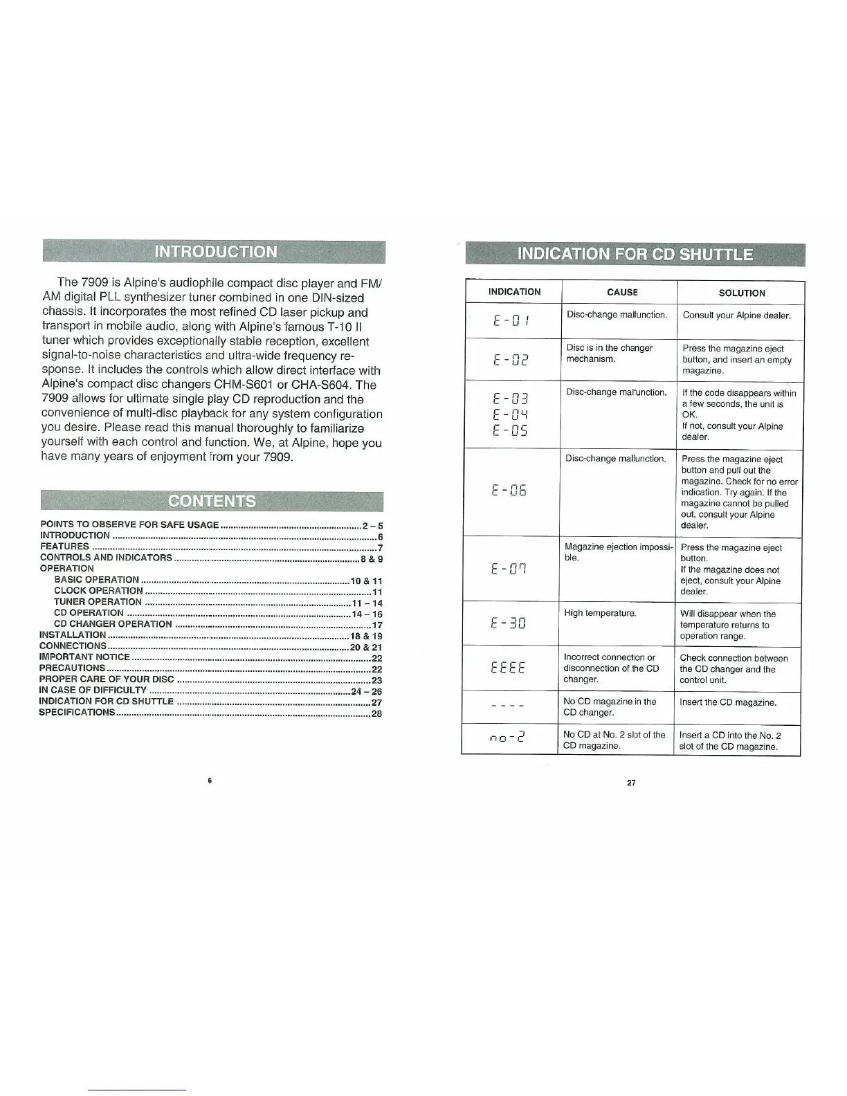 Alpine 7909 - INTRODUCTION; Manual Overview
