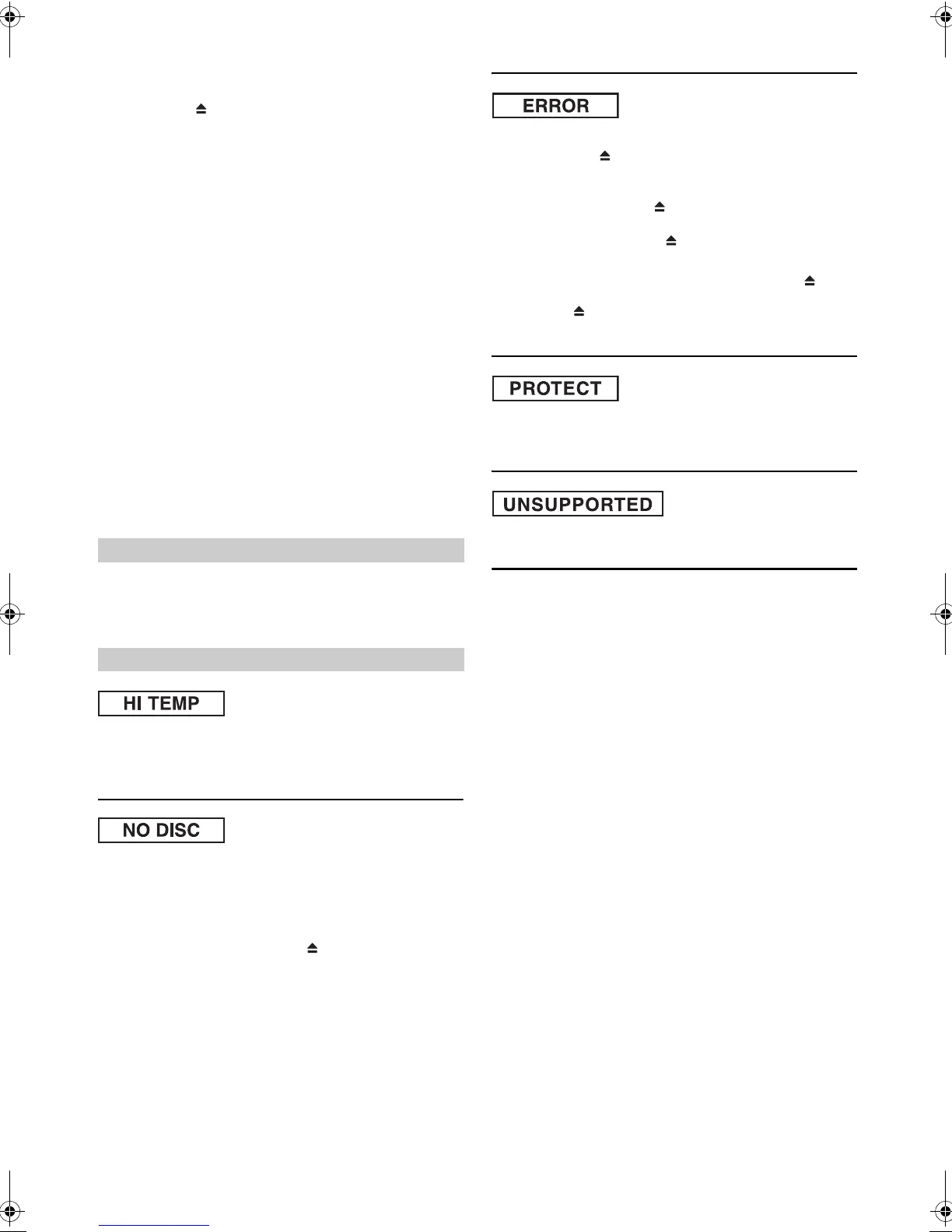 • Bien qu’un disque soit inséré dans l’appareil, « NO DISC » est