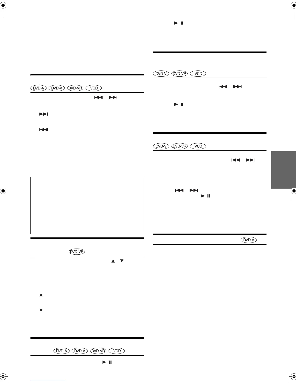 • Durante la pausa, es posible realizar la operación de discos DVD de