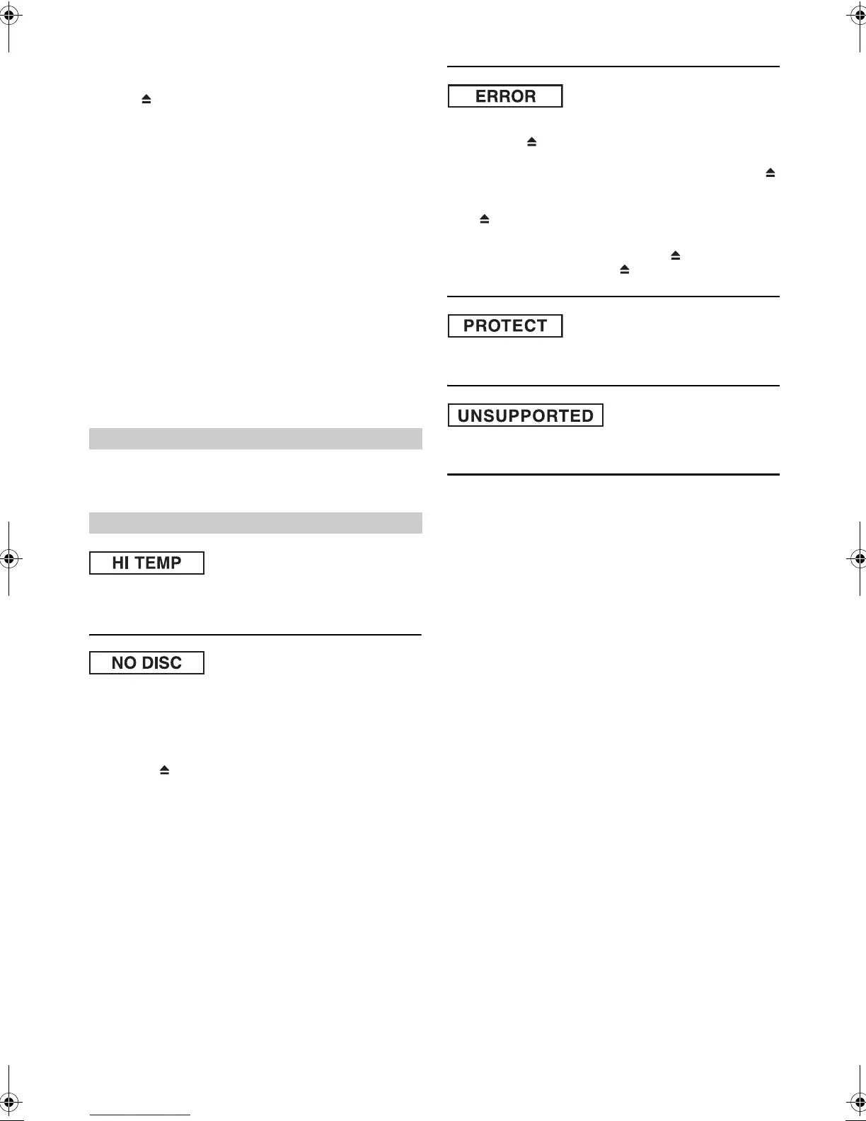 • Although a disc is inserted, “NO DISC” is displayed and the unit