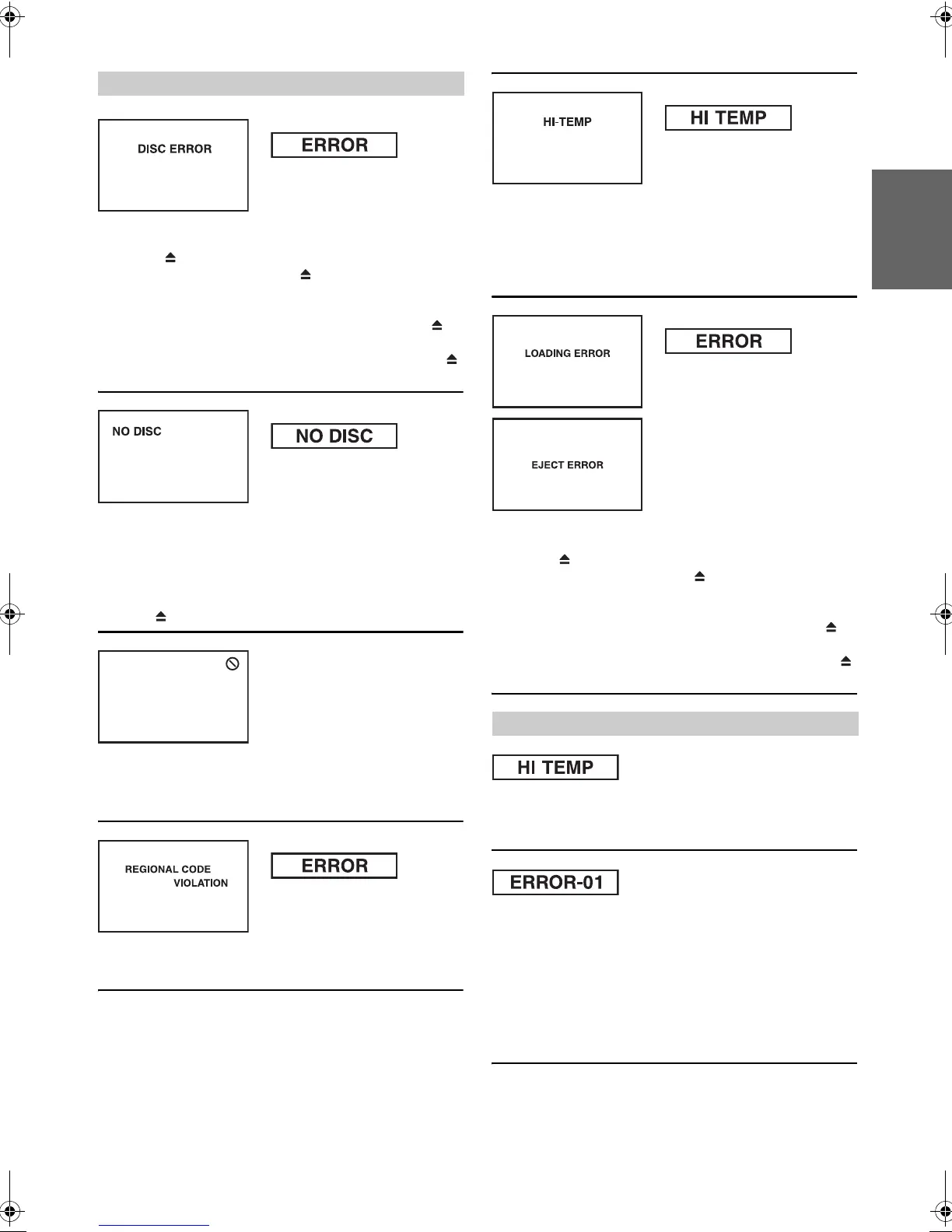 • Although a disc is inserted, “NO DISC” is displayed and the unit