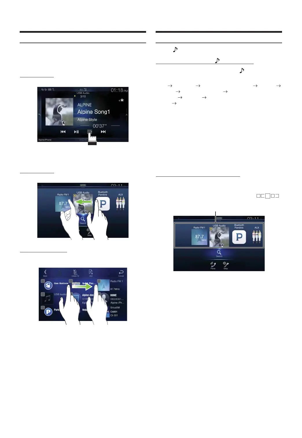 on the lower part of the Audio source screen or by swiping upward.