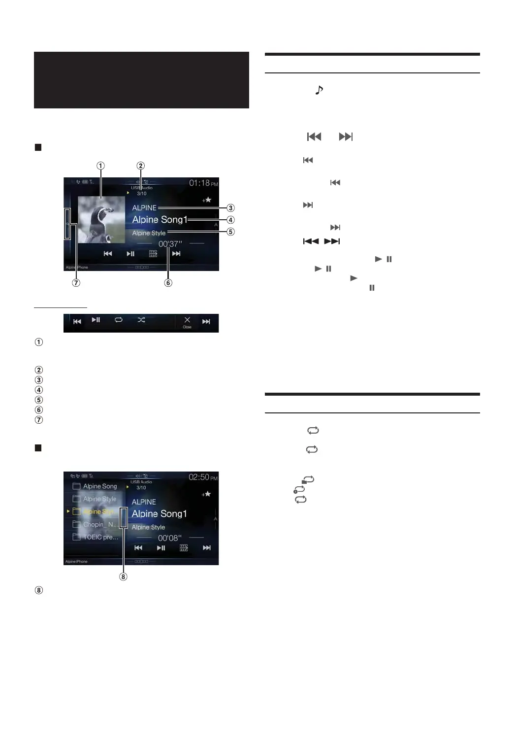 information, the ID3 tag/WMA tag information is displayed. (e.g., song