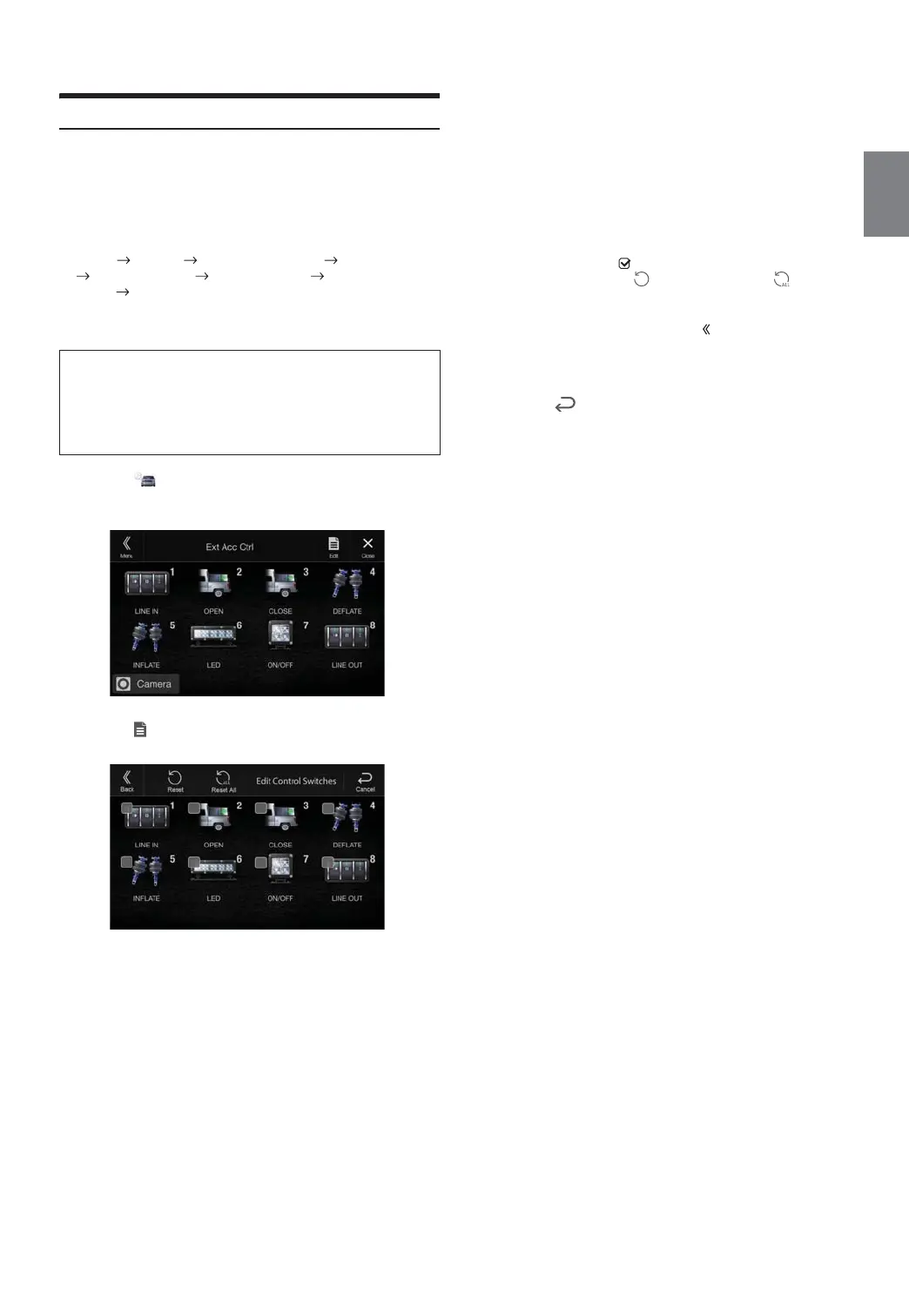 1 Tou ch [] (Ext Acc Ctrl) in the Menu screen to activate