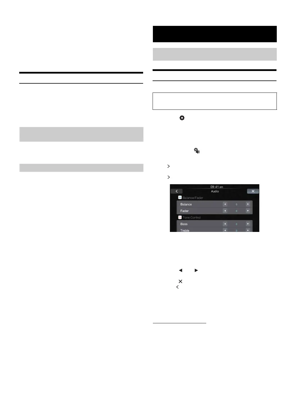 Setting items: Balance / Fader / Bass / Treble / Subwoofer /