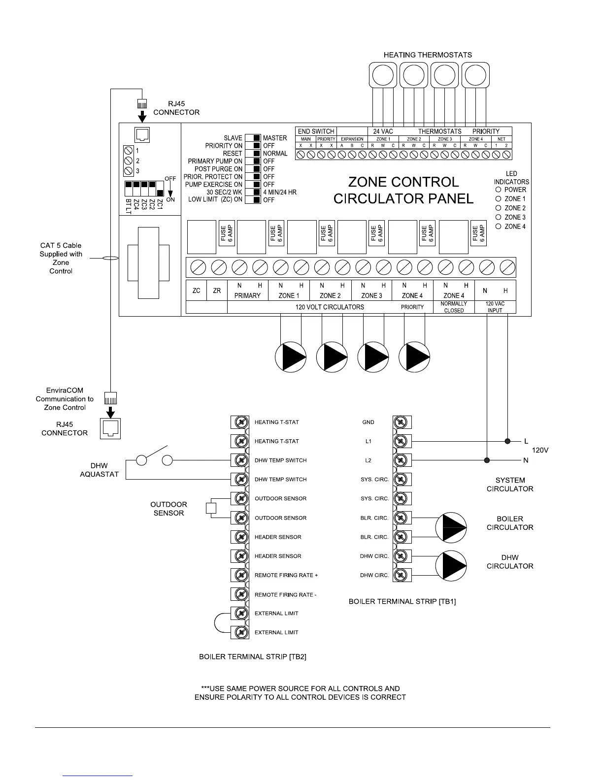Figure 29B: DHW Priority/Circulators (with Zone Panel) Piped Off System Header
