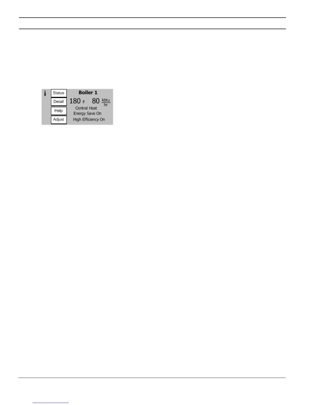 Boiler status and setup selections are available from an