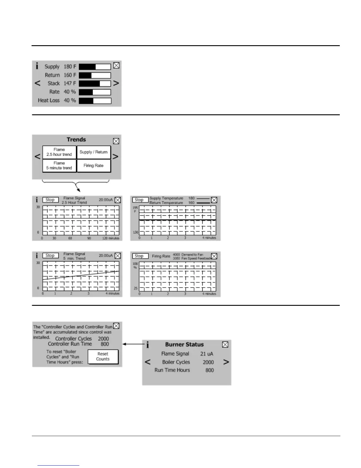Alpine ALP150B - Bargraph Screen; Burner Status Screen; Trend Screens