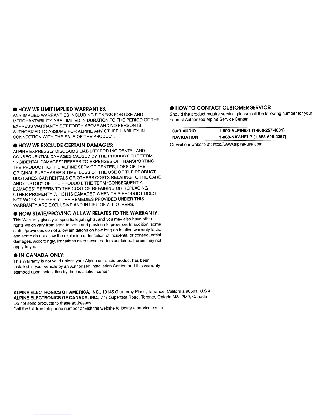 ALPINE EXPRESSLY DISCLAIMS LIABILITY FOR INCIDENTAL AND