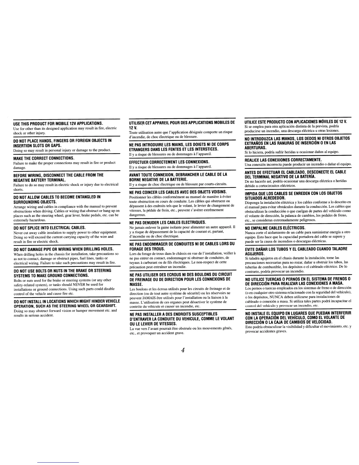 obstructions when driving. Cables